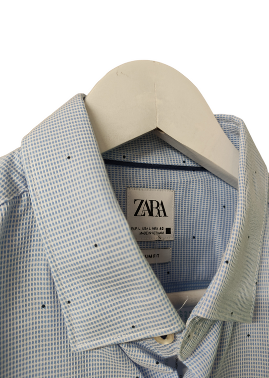 Branded, Stock Ανδρικό Πουκάμισο σε Σιέλ χρώμα με ψιλό σχέδιο (Medium)