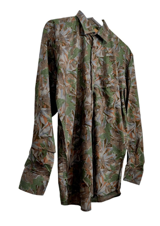 Vintage, Εμπριμέ Ανδρικό Πουκάμισο HB σε Χακί-Καφέ χρώματα (No 41/16 - Large)