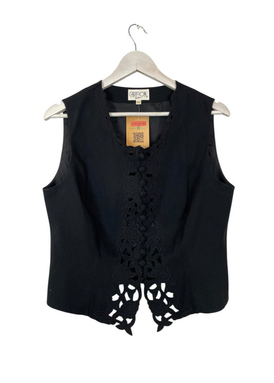 Vintage Γυναικείο Γιλέκο CARTOON FASHION με Κιπούρ σχέδιο σε Μαύρο Χρώμα (Medium)