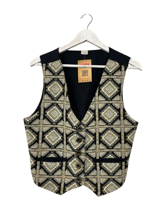 Vintage Γυναικείο Γιλέκο σε Μαύρο Χρώμα πίσω με Σχέδιο μπροστά (Large)