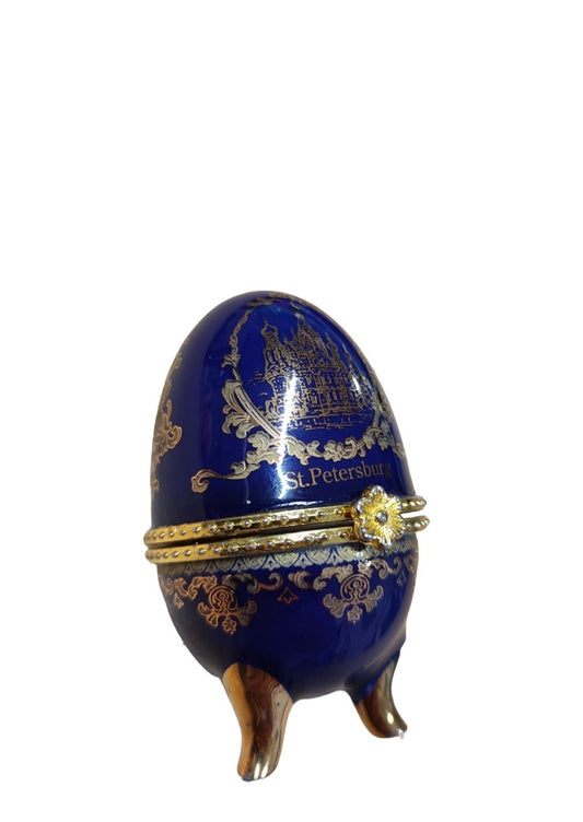 Vintage, Διακοσμητικό Αυγό St. PETERSBURG (Στυλ Fabergé) με Σκούρο Μπλε χρώμα