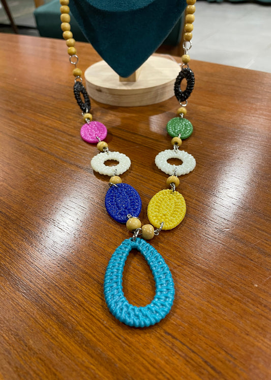 Κολιέ τύπου Ξύλο με Χρωματιστές Τόκες