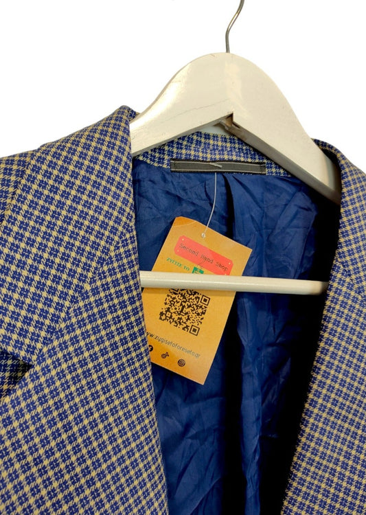 Premium Branded, Πτι Καρό Γυναικείο Σακάκι σε Μπλε-Μπεζ χρώμα (Large)