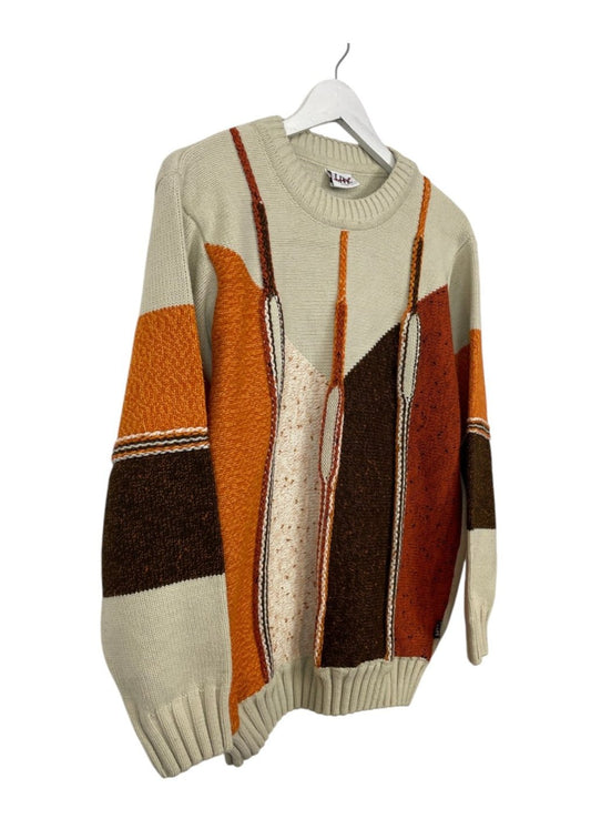 Vintage, Γυναικεία Πλεκτή Μπλούζα/Πουλόβερ LIVE FAST σε Εκρού/Πορτοκαλί Χρώμα (Medium)