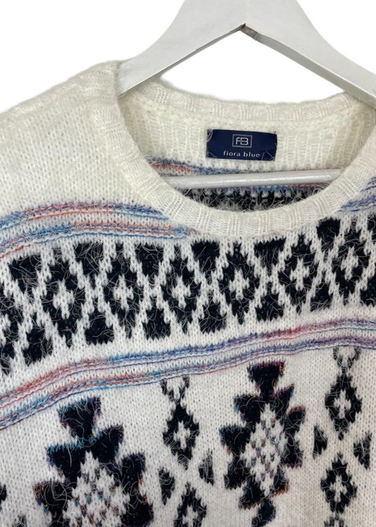 Stock, Γυναικεία Πλεκτή Μπλούζα/Πουλόβερ FIORA BLUE σε Λευκό χρώμα (Large)