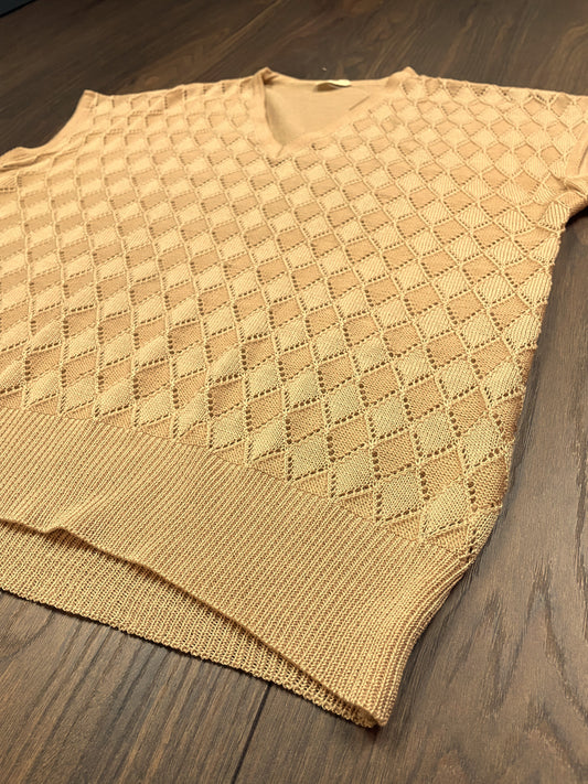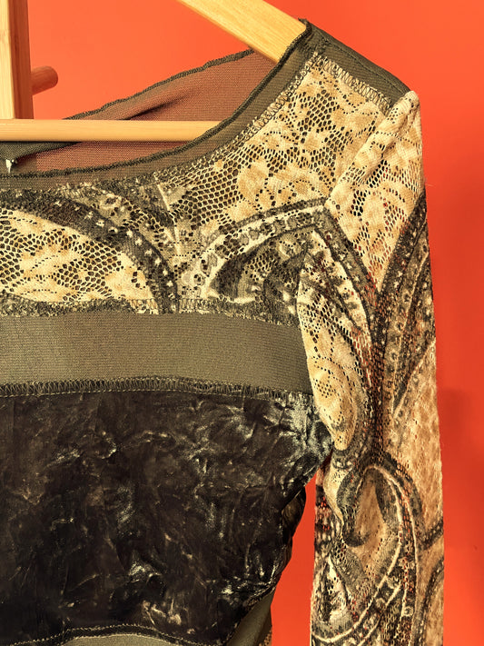Vintage Γυναικεία Μπλούζα από Βελούδο και Κοφτό σχέδιο σε Χακί / Μπεζ χρώμα (Small)