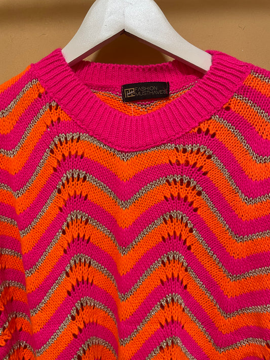 Vintage Γυναικεία Πλεκτή Μπλούζα FASHION MUSTHAVES σε Φλούο χρώματα (Άνετο M-L)