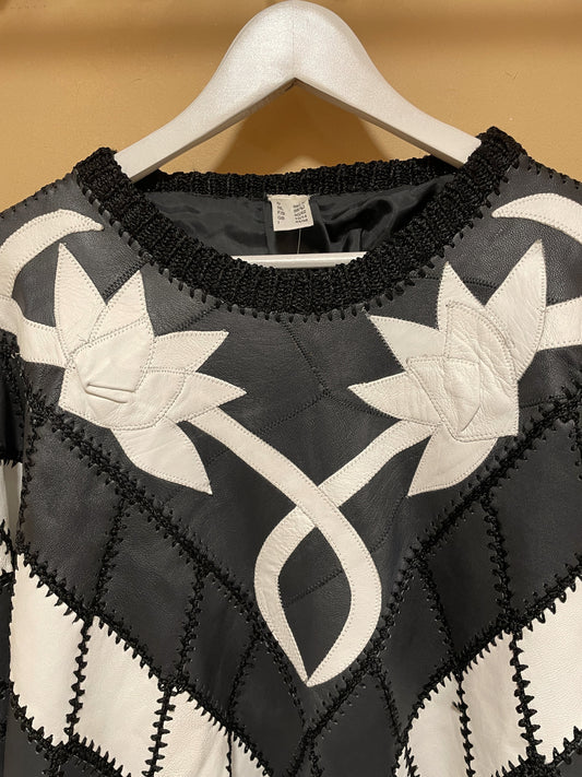 UNIQUE ITEM! - Vintage, Δερμάτινη Μπλούζα σε Ασπρόμαυρο Χρώμα (Oversized M/L)