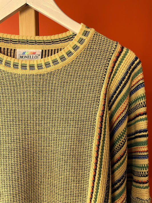 Vintage, Πλεκτή Μπλούζα / Πουλόβερ MONELLO σε Μουντό Κίτρινο Χρώμα (XL)