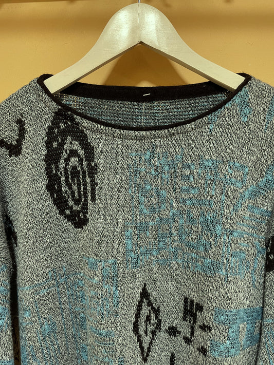 Vintage, Γυναικεία Πλεκτή Μπλούζα / Πουλόβερ σε Σιέλ Χρώμα (Large)