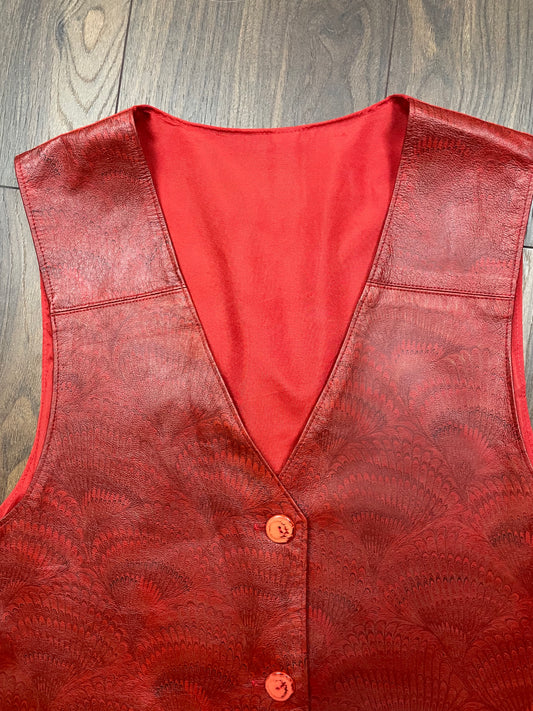 Vintage, Δερμάτινο Γυναικείο Γιλέκο σε Βαθύ Κόκκινο χρώμα (M/L)