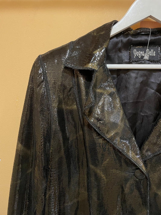 Vintage, Δερμάτινο Γυναικείο Τζάκετ / Πανωφόρι PEGRA PELLE σε Μαύρο-Λαδί χρώμα (Large)