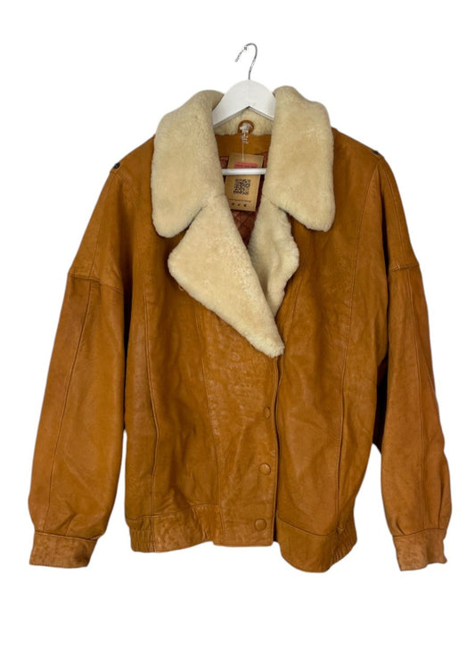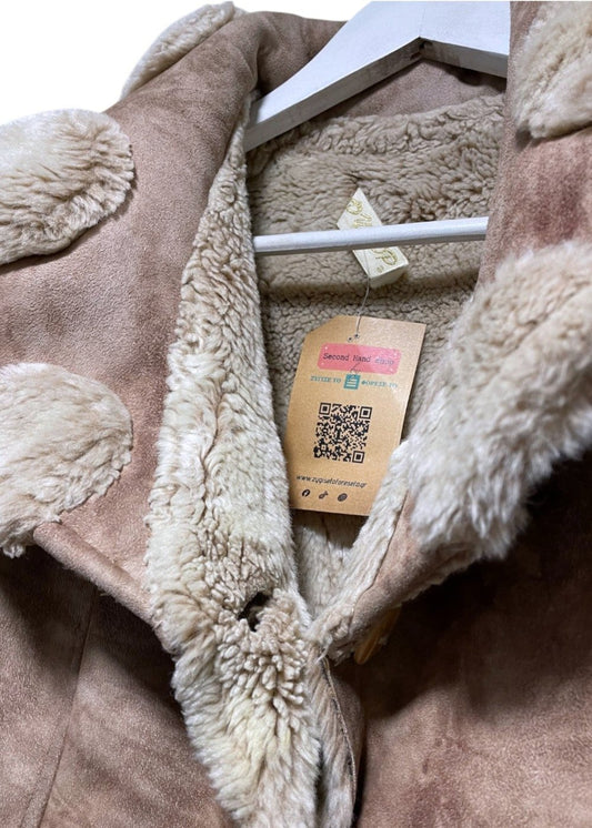Vintage, Δερμάτινο Γυναικείο Μουτόν ΦYPOP σε Καφέ/Μπεζ χρώμα (Small)