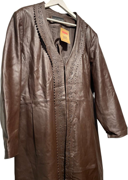 Vintage, Δερμάτινο Γυναικείο Παλτό CENTIGRADE σε Σκούρο Καφέ χρώμα (2XL)