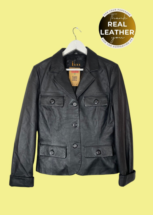 Ιταλικό, Δερμάτινο Γυναικείο Τζάκετ / Πανωφόρι σε Μαύρο χρώμα (S/M)