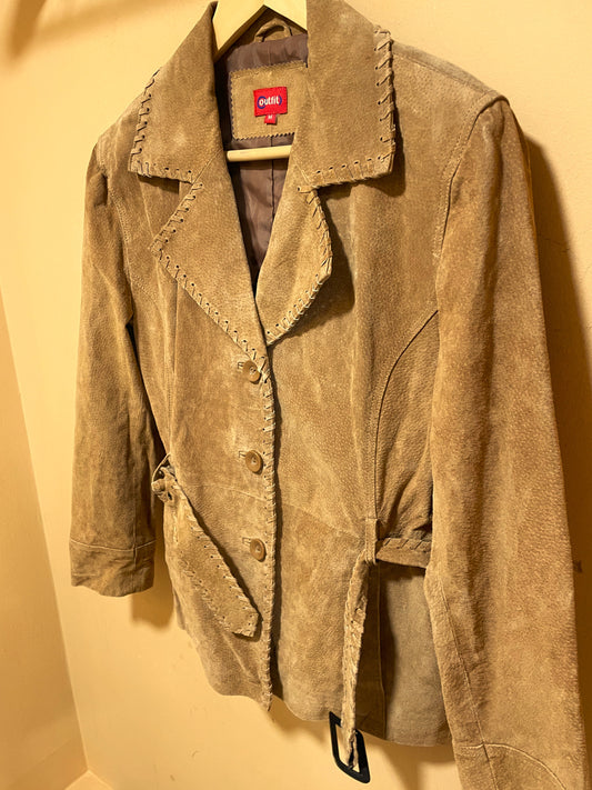 Vintage, Δερμάτινο / Σουέτ Γυναικείο Παλτό σε Χακί χρώμα (XL)