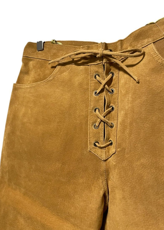 Vintage, Stock Γυναικείο Δερμάτινο Παντελόνι WOODPECKER σε Καμηλό χρώμα (Medium)