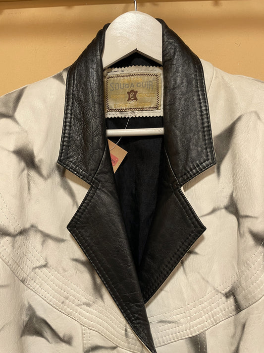 Vintage, Δερμάτινο Γυναικείο Τζάκετ / Πανωφόρι σε Σπασμένο Λευκό χρώμα (Large)