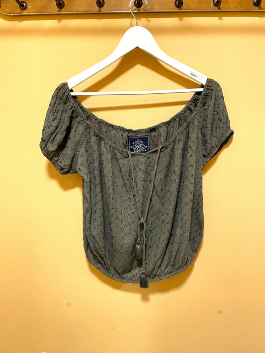 Vintage, Κοντομάνικο, Γυναικείο Πουκάμισο CA MA σε Καφέ - Πράσινα χρώματα (XL)