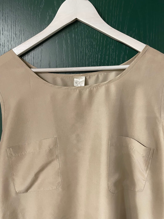 Μεταξωτή, Αμάνικη Γυναικεία Μπλούζα σε Μπεζ - Χρυσό (Large - 42)
