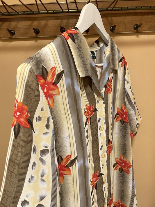 Vintage, Εμπριμέ Γυναικείο Πουκάμισο CANDA σε Καφέ - Μπεζ χρώματα (Άνετο Medium)