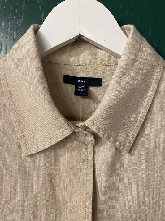 Λινό, Κοντομάνικο Γυναικείο Πουκάμισο GAP στο Χρώμα της Άμμου (Medium)
