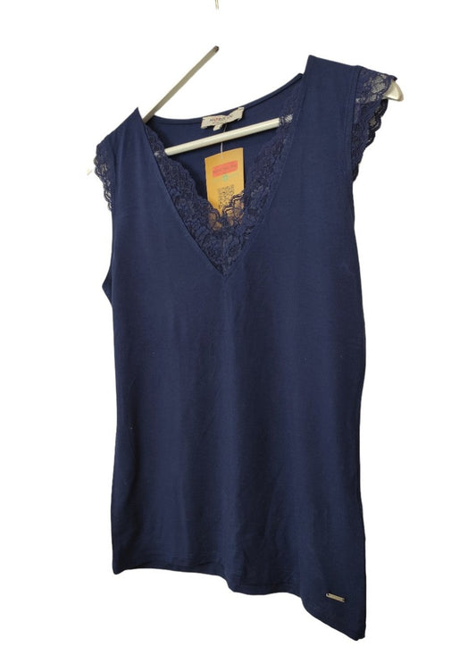 Αμάνικη, Γυναικεία Μπλούζα MORGAN με Δαντέλα σε Μπλε Σκούρο Χρώμα (Medium)