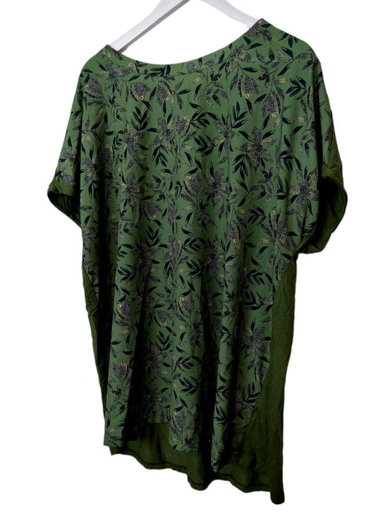 Stock, Εμπριμέ, Κοντομάνικη Γυναικεία Μπλούζα PEACOCKS σε Πράσινο χρώμα (2XL)