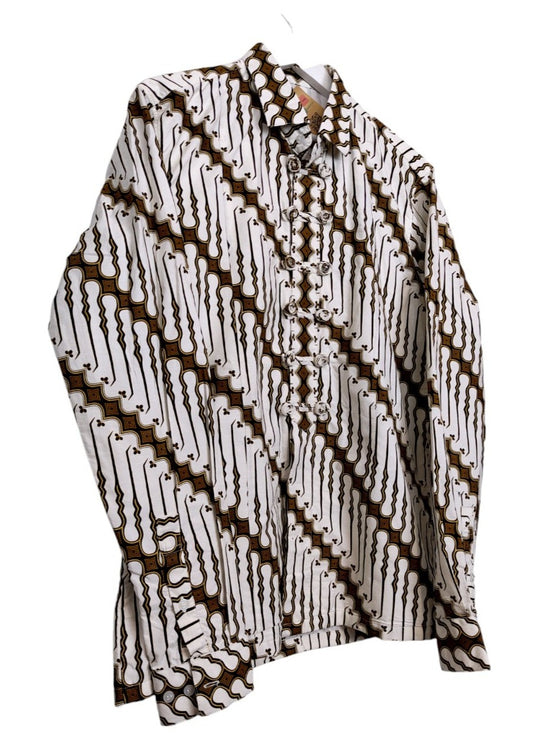Vintage, Γυναικείο Πουκάμισο BATIK KERIS σε Ζαχαρί Χρώμα (Large)