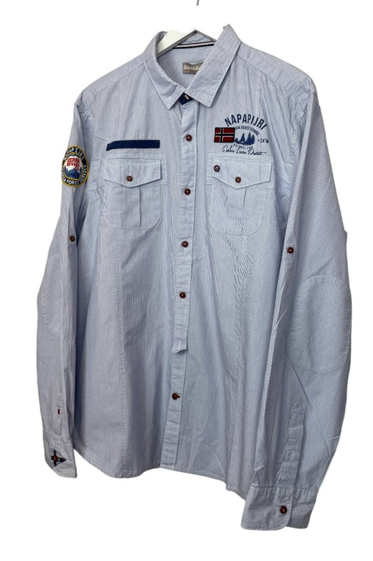 Ανδρικό Ριγέ Πουκάμισο NAPAPIJRI σε Λευκό- Μπλε χρώμα (Large)