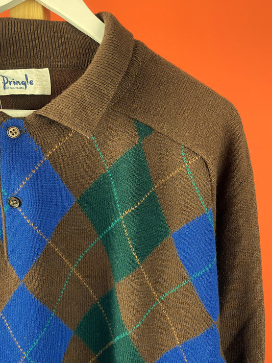 Vintage, Πλεκτή Ανδρική Μπλούζα / Πουλόβερ DRINGLE σε Καφέ χρώμα (Large)