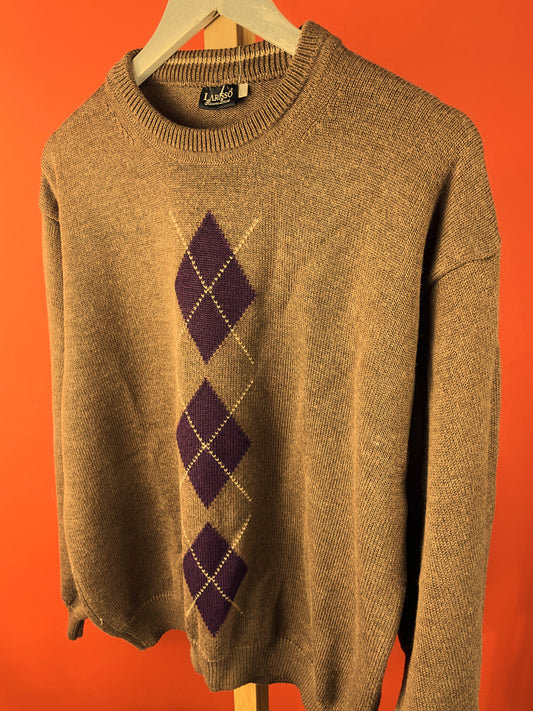 Vintage, Πλεκτή Ανδρική Μπλούζα / Πουλόβερ LARUSSO σε Καφέ χρώμα (Άνετο M/L)