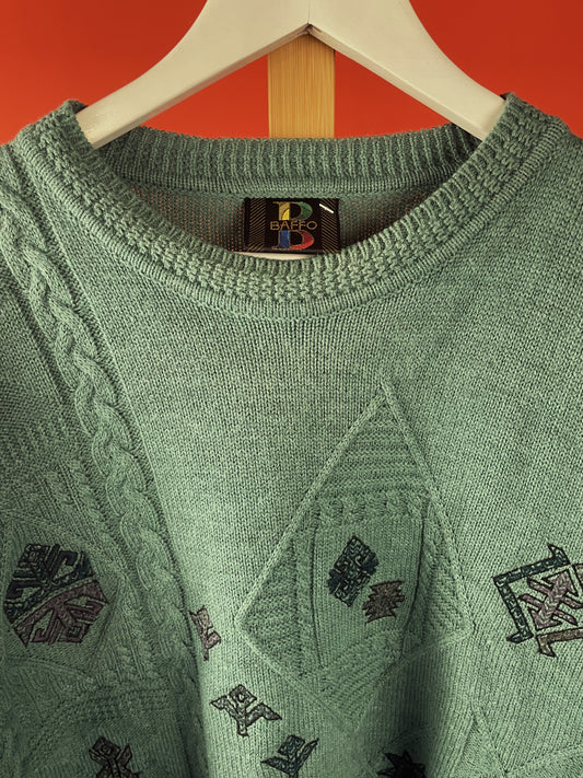 Vintage, Πλεκτή Ανδρική Μπλούζα / Πουλόβερ BAFFO σε Dirty Βεραμάν (Large)