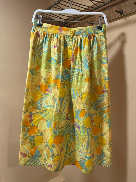Vintage, Ιταλική, Εμπριμέ Φούστα σε Κίτρινο - Πορτοκαλί χρώμα (Small)