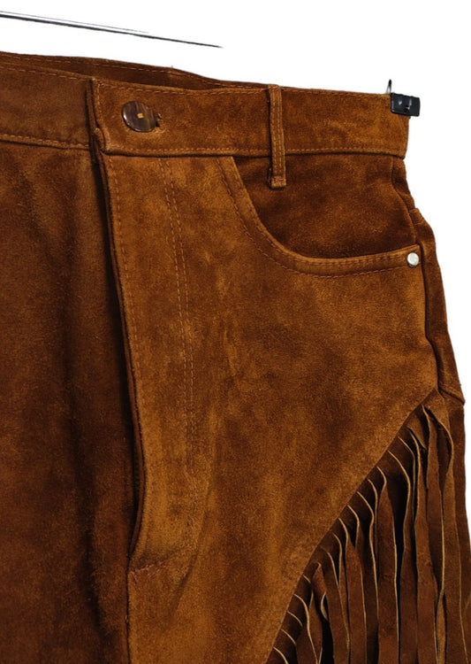 Vintage, Midi Καστόρ φούστα με Κρόσσια σε Καφέ χρώμα (2XS)