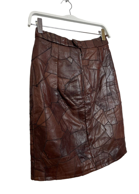 Vintage, Δερμάτινη, Pencil Φούστα σε Σκούρο Καφέ χρώμα (XS)