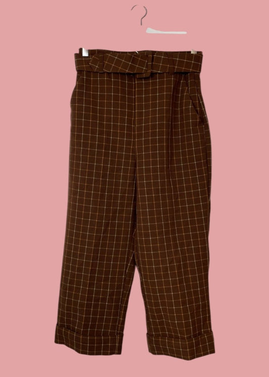 Stock Καρό Γυναικείο Παντελόνι VERO MODA σε Καφέ χρώμα (Small)