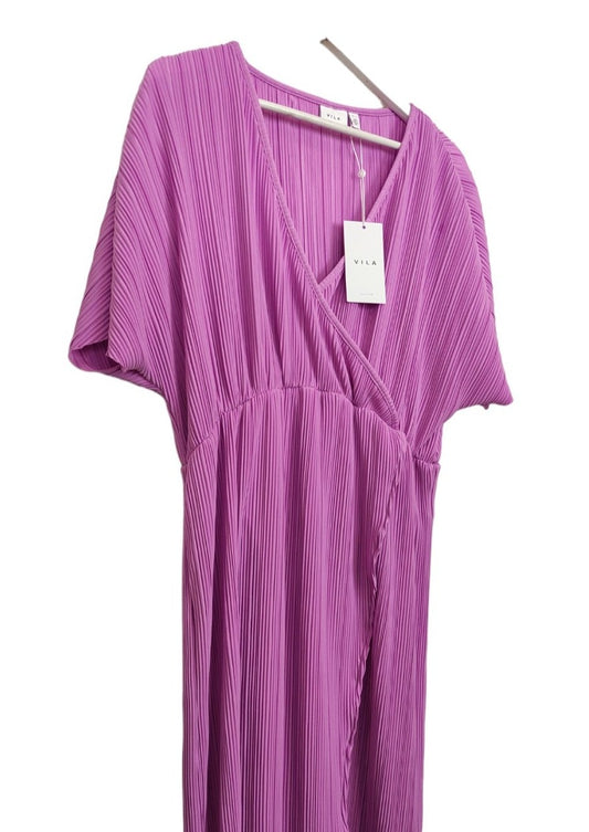 Outlet, Πλισέ Κοντομάνικο Φόρεμα VILA σε Ροζ χρώμα (Large)