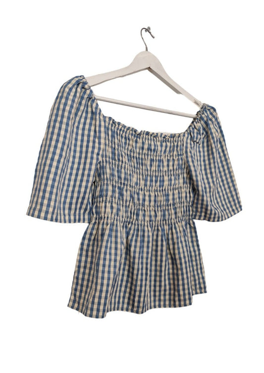 Outlet, Καρό Μπλούζα με Τιράντες VILA σε Σιέλ-Μπεζ χρώμα (34-XS)