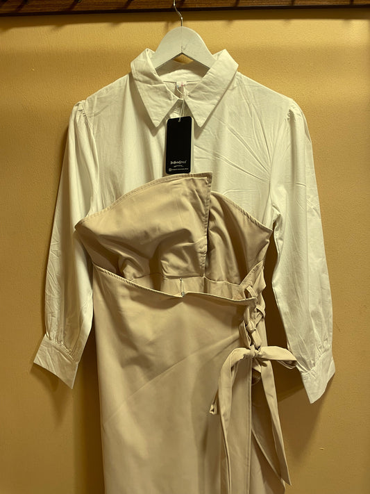Stock Φόρεμα TWOTWINSTYLE σε Μπεζ - Λευκό χρώμα (Medium)