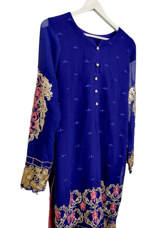 Έθνικ, Vintage Φόρεμα/Καφτάνι σε Έντονο Μπλε Χρώμα (Small)