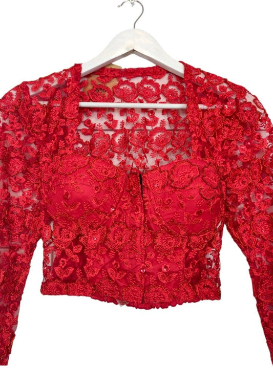 Oriental, Vintage Τοπ με Δαντέλα σε Κόκκινο Χρώμα του Κρασιού (XS)