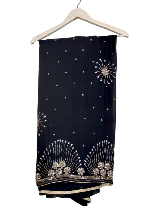 Vintage, Ινδικό Παραδοσιακό Σάρι σε Μαύρο - Ασημί χρώμα