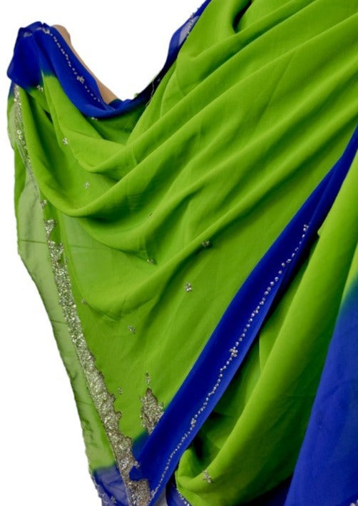 Vintage, Ινδικό Παραδοσιακό Σάρι σε Πράσινο-Βαθύ Μπλε χρώμα