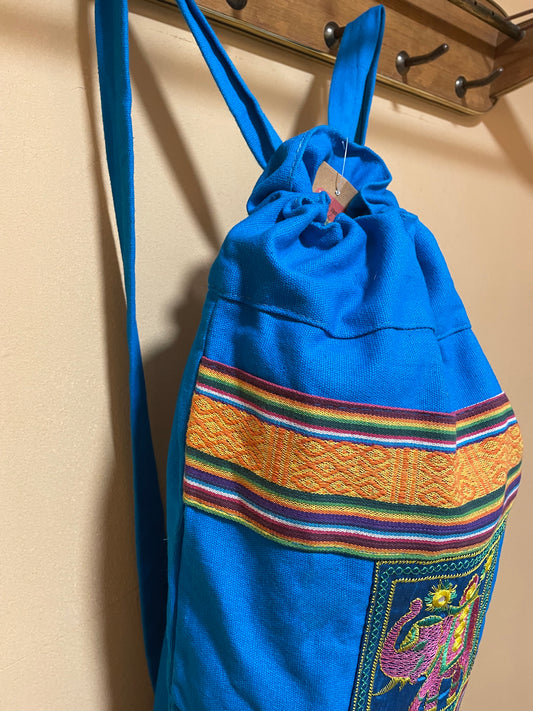 Backpack - Πάνινη, Έθνικ Τσάντα Πλάτης σε Γαλάζιο χρώμα