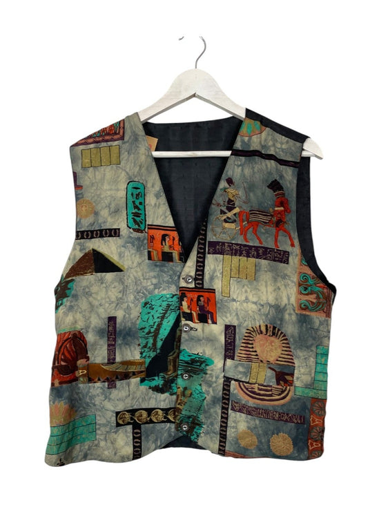 Vintage Γυναικείο Γιλέκο σε Μαύρο Χρώμα πίσω με Σχέδιο μπροστά (Large)