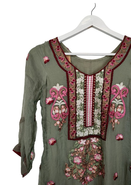Έθνικ, Vintage Φόρεμα Με Περίτεχνο Σχέδιο σε Χακί Χρώμα (Small)