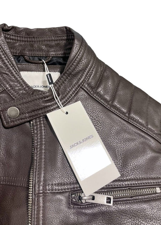 Outlet Ανδρικό Τζάκετ/Μπουφάν Δερματίνης JACK & JONES σε Καφέ χρώμα (XS)