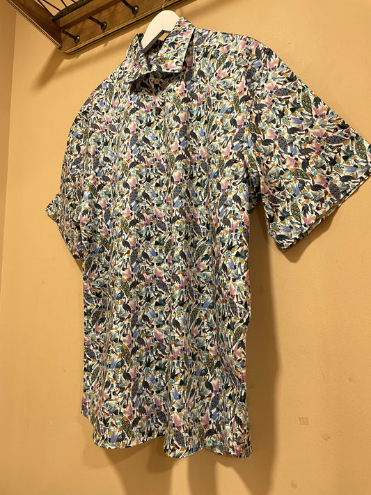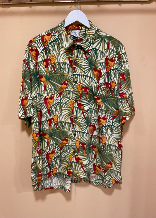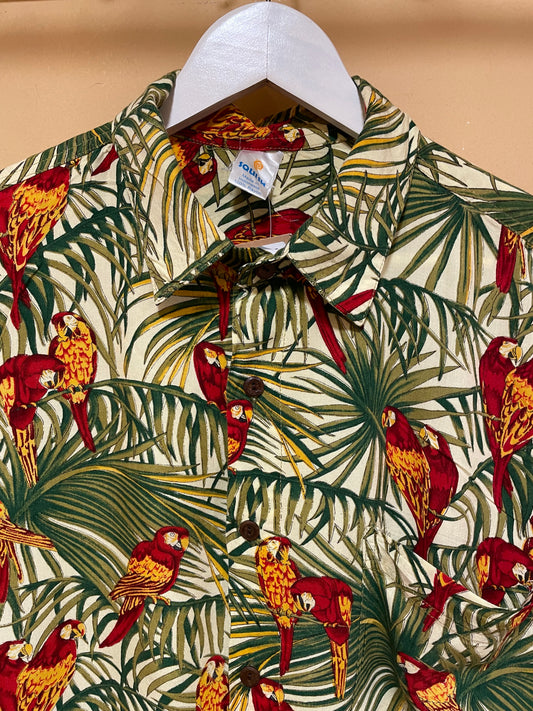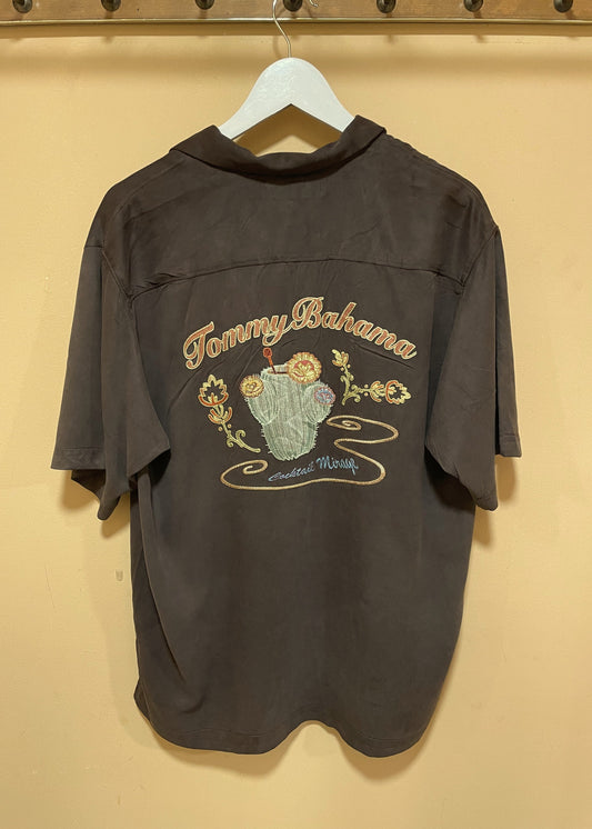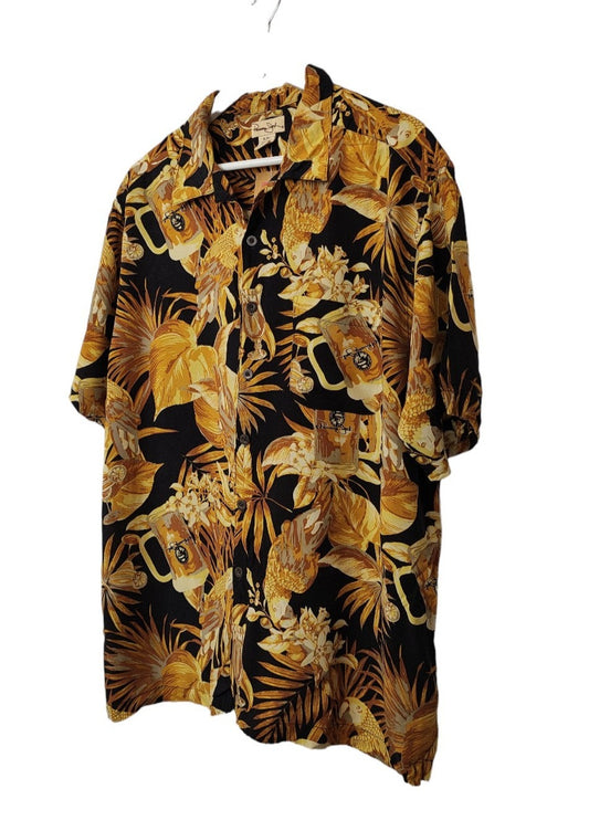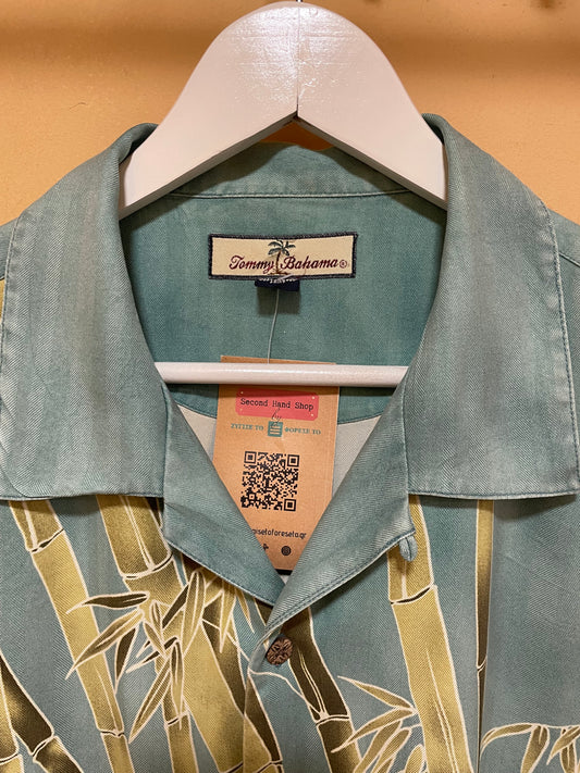 Μεταξωτό, Hawaiian, Ανδρικό Πουκάμισο TOMMY BANANA σε Βεραμάν - Λαδί χρώματα (Άνετο L)