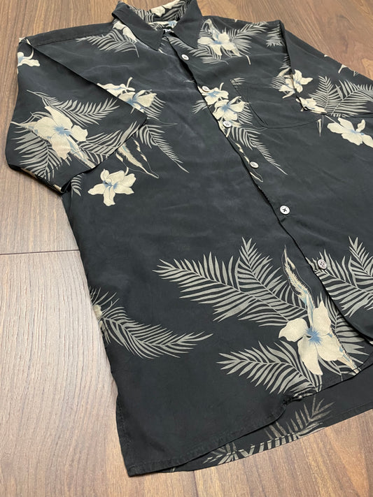 Μεταξωτό, Hawaiian Ανδρικό Πουκάμισο SILK ICON σε Μαύρο / Γκρι χρώμα (Άνετο M)